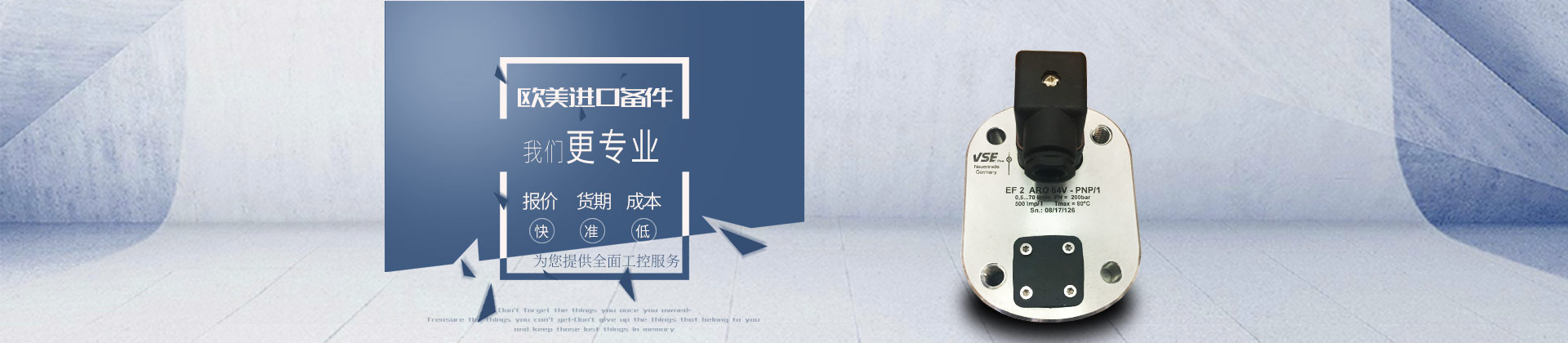 上海維特銳實(shí)業(yè)發(fā)展有限公司主要經(jīng)營(yíng)歐洲、美國(guó)、日本等廠家的工控機(jī)電設(shè)備、儀器儀表、泵閥、電線電纜及各種自動(dòng)化產(chǎn)品的備品配件。經(jīng)過長(zhǎng)年的業(yè)務(wù)經(jīng)驗(yàn),積累了豐富的信息資源,使公司擁有了完善的技術(shù)查詢系統(tǒng)及優(yōu)良的技術(shù)人員,能保證為客戶作出Z快、Z準(zhǔn)確的回復(fù)。我們重點(diǎn)服務(wù)的行業(yè)有:鋼鐵、礦山、港口、船舶、電力、電子、能源、化工、玻璃陶瓷、造紙、釀酒、水泥、建筑、制藥、卷煙、機(jī)床、醫(yī)療器械、環(huán)保等。隨著國(guó)內(nèi)經(jīng)濟(jì)的不斷發(fā)展,越來越多的進(jìn)口設(shè)備被引進(jìn),多種多樣的自控元件被應(yīng)用使我國(guó)的經(jīng)濟(jì)有了飛速的發(fā)展,但是設(shè)備...